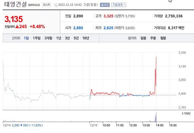 태영건설 2시 땡치고 폭등 중 ㅋㅋㅋ