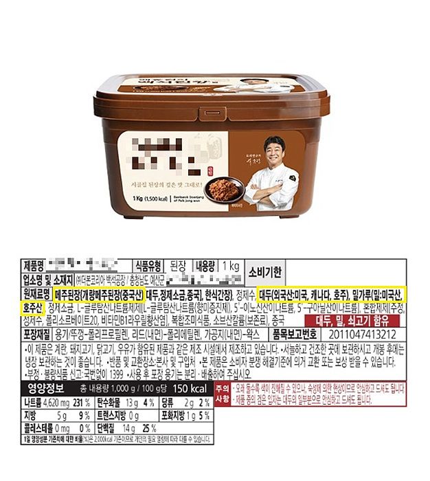 11일 관련 업계에 따르면 충남 예산에 위치한 더본코리아 백석공장서 제조된 ‘백종원의 백석된장’의 성분표에는 중국산 개량 메주 된장, 미국·캐나다·호주산 대두, 그리고 미국·호주산 밀가루가 포함된 것으로 확인됐다.