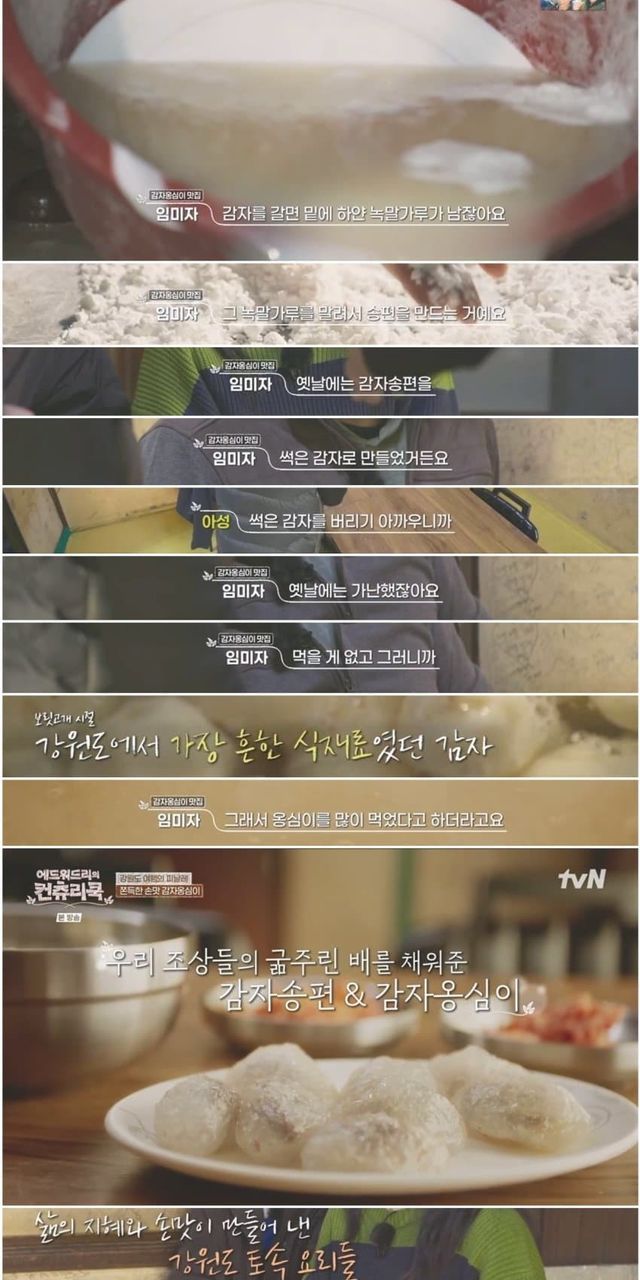 옛날에 감자옹심이를 썩은 감자로 만들었다는 얘기를 들은 에드워드 리
