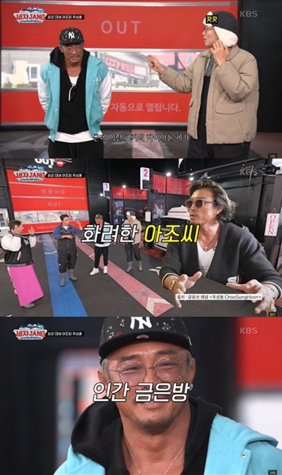 10일 방송된 KBS 2TV '세차JANG'에 요즘 대세 '아조씨' 추성훈이 등장했다. 촬영일 기준 3개월 만에 구독자 100만 명을 달성했다는 추성훈은 화려한 장신구를 갖춰 시선을 끌었다.