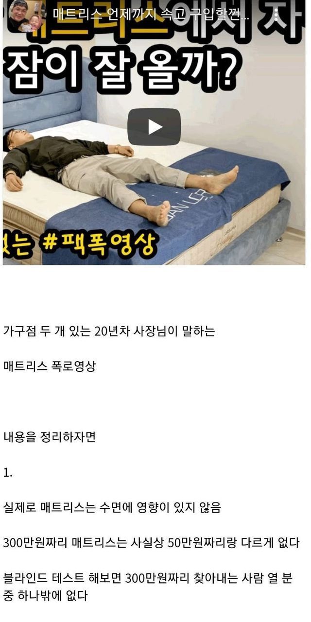 요새 유행하는 고급 매트리스의 진실
