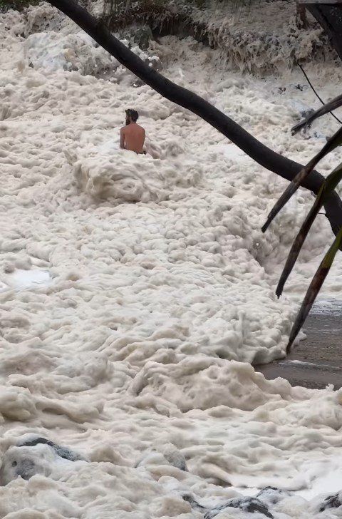 최근 인스타그램 등 소셜미디어(SNS)에는 출렁이는 흰색 거품 속에서 사람들이 헤엄치는 모습이 잇따라 올라왔다.