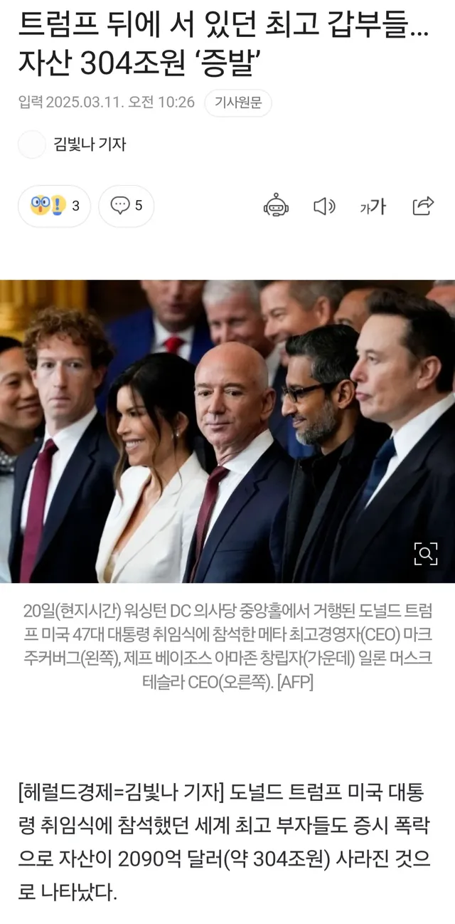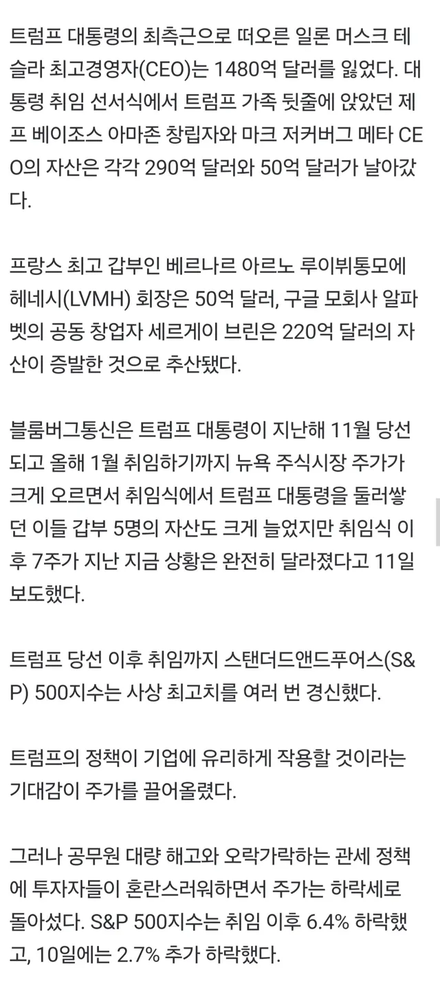 크... 취임식 참석한 부자들 자산까지도 정상화하네