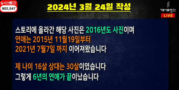 한편 지난 10일 유튜브 채널 '가로세로연구소'(이하 '가세연')에는 ‘[충격단독] 김새론 죽음 이끈 김수현 (김새론 15살 때부터 6년 열애)’ 제목의 영상이 공개됐다.