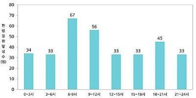 한랭질환은 주로 오전 69시(20.1%, 67명)와 912시(16.8%, 56명) 사이에 많이 발생하는 것으로 나타났다. 이는 밤 사이 낮아진 온도가 영향을 미치는 것으로 보여, 오전 활동 시 각별한 주의가 필요하다.