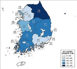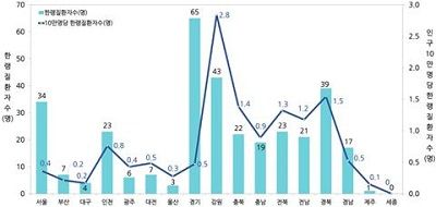 지역별로는 경기지역(19.5%, 65명)에서 가장 많은 한랭질환자가 발생했으며, 인구 10만명당 발생률은 강원(2.8명), 경북(1.5명), 충북(1.4명), 전북(1.3명) 순으로 높았다.