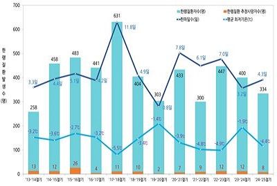 질병관리청(청장 지영미)이 지난 2024년 12월 1일부터 2025년 2월 28일까지 운영한 ‘2024-2025 한랭질환 응급실 감시체계’ 결과, 한랭질환자 334명(사망 8명)이 발생해 전년 대비 환자 16.5%, 사망자는 33.0% 감소했다고 발표했다.