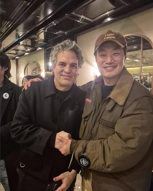 해당 사진은 최근 영화 '미키 17' 홍보를 위해 마크 러팔로가 내한했을 당시 촬영한 것으로 추정된다. 이희준의 사진에 영화 '핸섬가이즈'의 남동협 감독은 "촬영 남동협"이라는 댓글을 남기며 두 배우의 만남을 축하했다.