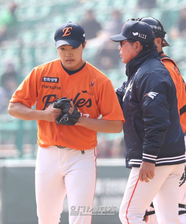 한화엔 155㎞/h 이상을 던지는 투수가 두 사람만 있는 게 아니다. 올해 1라운드 전체 2순위로 입단한 정우주도 156㎞/h를 찍고 한화에 왔다. 하지만 프로가 만만치는 않았다. 정우주는 시범경기 전 대전에서 치른 청백전 후 인터뷰에서 제구, 투구 템포 문제를 겪었고 위축되는 느낌도 받았다고 털어놨다. 정우주는 고등학교 때 마음가짐을 찾고 시범경기에서 강속구로 팬들의 눈도장을 받는 중이다.