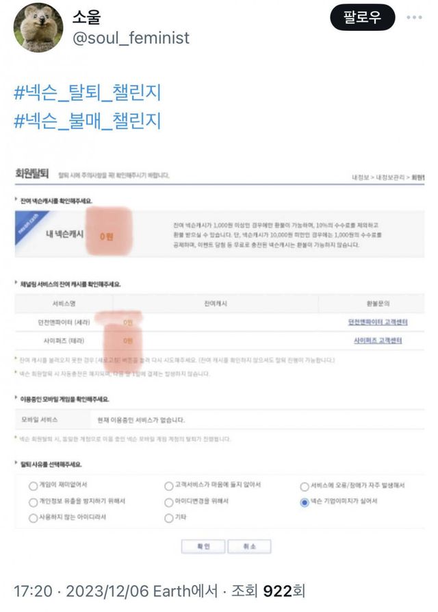잔여캐시 0원, 휴면계정들 탈퇴함으로서 넥슨 DB관리에 한 손 보태시는 중