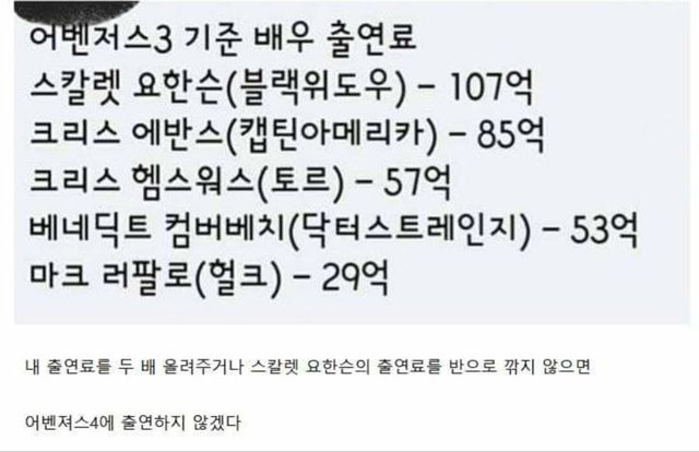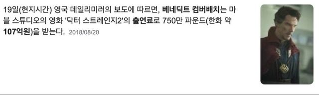 결국 컴버배치는 자신의 출연료를 여배우(스칼렛 조한슨)과 같은 100억으로 인상하는데 성공하였다.