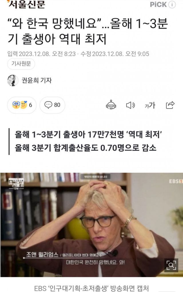 최근들어 몇년 사이에 출산율,출생아 수 박살나는중