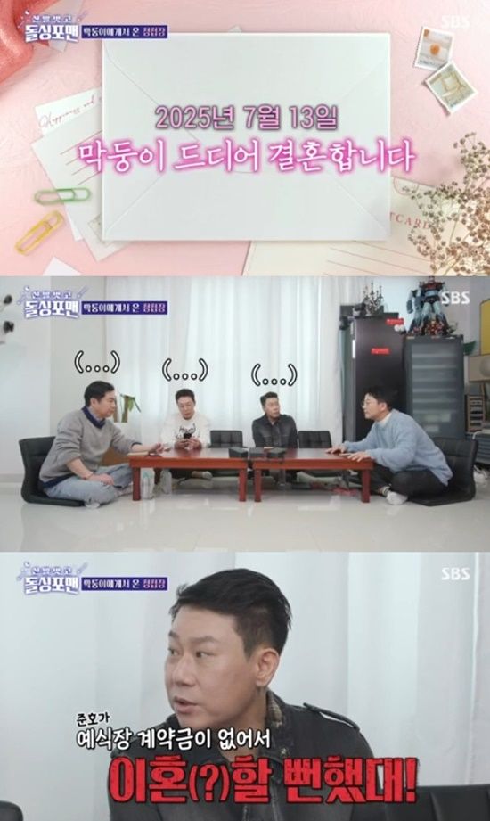 이날 김준호는 '돌싱포맨' 형들에게 "7월 13일에 다른 약속 잡으면 안된다"면서 청첩장을 건넸다.