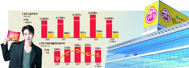 농심은 해외 매출 비중이 37% 수준이다. 삼양식품에 비해 상대적으로 해외 매출 비중이 작다 보니 내수 침체 영향을 받아 지난해 실적은 좋지 않았다. 작년 농심 매출은 3조4387억원으로 전년 대비 0.8% 증가했지만, 영업이익은 1631억원으로 23.1% 감소했다. 이를 만회하기 위해 농심은 부산에 ‘녹산 수출전용공장’을 설립해 늘어나는 수출 물량에 대응하겠다는 계획이다.
