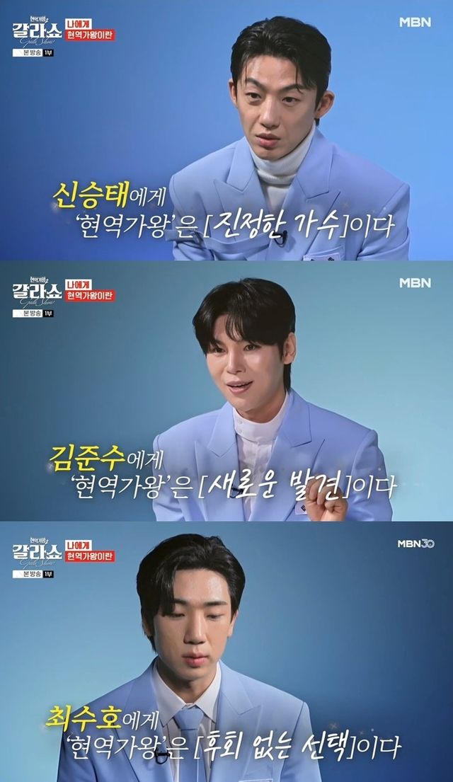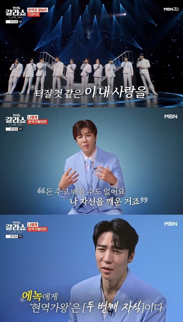 뒤이어 TOP2 진해성은 “‘현역가왕2’는 ‘성장’이다”라고 회상했고, TOP3 에녹은 “‘현역가왕2’는 ‘두 번째 자식’이다”, TOP4 신승태는 “‘현역가왕2’는 ‘진정한 가수’다”, TOP5 김준수는 “‘현역가왕2’는 ‘새로운 발견’이다”, TOP6 최수호는 “‘현역가왕2’는 ‘후회 없는 선택’이다”, TOP7 강문경은 “‘현역가왕2’는‘감사함’이다”라고 털어놨다.
