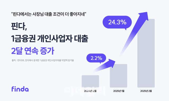 핀다에 따르면 개인사업자 대출 중개 금액이 지난 1월에는 전월 대비 2.2% 증가했고, 지난 2월에는 전월 대비 24.3%, 전년 대비 29% 각각 증가하며 2개월 연속으로 증가세를 보였다.