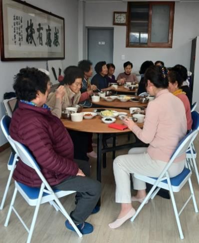 경로당은 공간이 좁아 평소에는 접어뒀다가 식사 때 펴서 사용할 수 있도록 접이식 원탁 세트를 지원하고 편안하게 여가생활을 즐길 수 있도록 소파를 지원하고 있다.