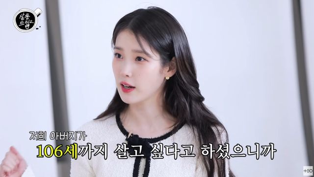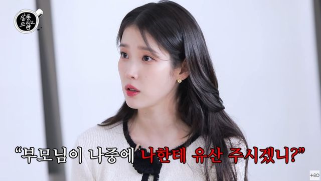 아이유는 "엄마,아빠가 없이 하루이틀 더 사는 건 좀 그렇지 않나. 생각한다"라고 자신의 생각을 전했다. 이어 "남동생에게 '훈아, 네가 진짜 효도해야지' 한다. '엄마 아빠 돌아가실 때 나한테 유산 주시겠니? 너가 어차피 다 상속 받을텐데' 저는 아무래도 금전적으로는. 유산도 여쭤본 적이 있다. 부모님께서는 '너희 4명 똑같이 줄거야'라고 하셨다. 그래서 '에이 됐어, 그냥 나는 빠질게. 내 몫은 빼고 1/3으로 하고, (훈이가) 더 효도하라'라고 했다. 독특한 집이다. 다 성격이 많이 다르다. 재미있다"라며 웃음지었다.