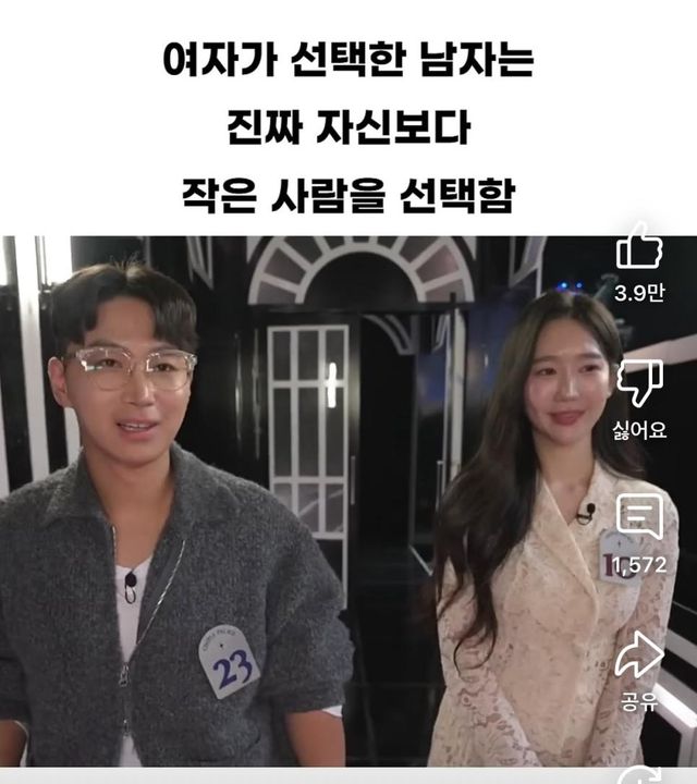 실제로 데이트할때 위 남자 말고 자기보다 키 작은 남자를 선택함