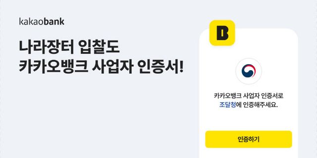 [이데일리 김나경 기자] 앞으로 카카오뱅크 사업자인증서를 조달청 ‘차세대 나라장터’ 인증 수단으로 사용할 수 있다.