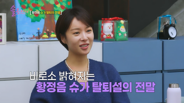 11일 방송된 SBS Plus, E채널 '솔로라서' 10회에서는 MC 신동엽과 황정음, 솔로 언니 윤세아, 스페셜 게스트로 아유미가 자리한 가운데 황정음의 일상이 펼쳐졌다.
