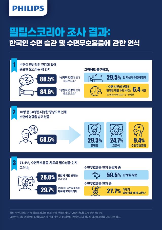 필립스코리아는 12일 세계 수면의 날을 맞아 대국민 수면 습관 및 수면 무호흡증에 관한 인식 조사 결과를 발표했다.