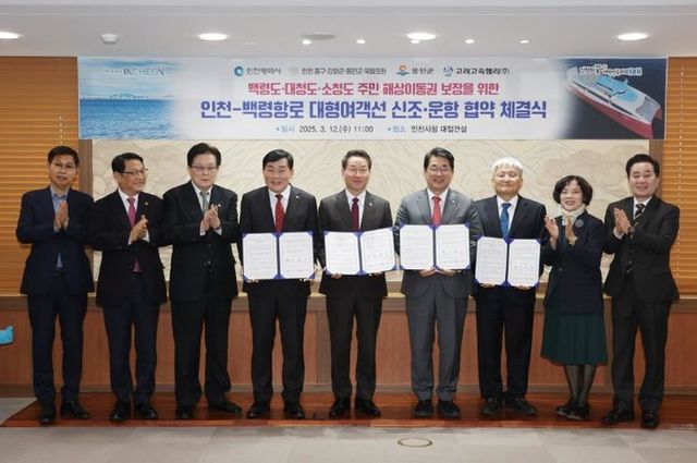 [파이낸셜경제=김영란 기자] 옹진군은 12일 고려고속훼리㈜와 인천-백령항로 대형여객선 도입지원을 위한 업무협약을 체결했다고 밝혔다.