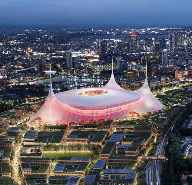 콘셉트 이미지를 보면 구장에는 빗물과 태양에너지를 모을 수 있는 캐노피가 설치되며 200m 높이의 돛대 3개가 들어설 예정이다. 구장 가치는 약 24억 유로(3조 8000억원)으로 예상된다.