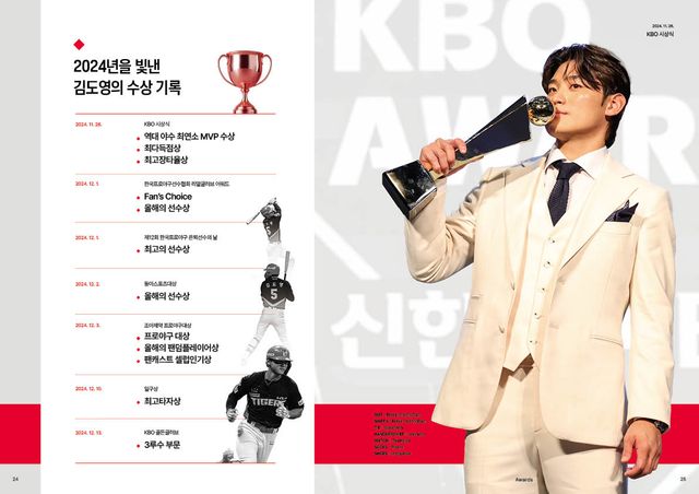김도영의 에이전시 MVP스포츠는 12일 "김도영의 기념비적 2024시즌을 팬들과 함께 추억하기 위한 화보 스토리북 'The Young King'을 발간했다"며 "프로야구 선수 중 단독 화보 스토리북을 낸 것은 김도영이 역대 최초"라고 밝혔다.