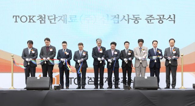 이날 행사에는 윤원석 인천경제자유구역청장, 타네이치 노리아키 일본 도쿄오카공업(TOK) 사장, 김기태 티오케이첨단재료㈜ 사장 등이 참석했다.