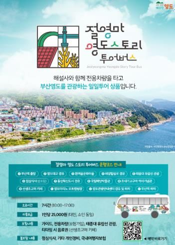절영마 영도 스토리 투어버스는 25인승 버스에 투어 해설사가 탑승하여 주요 테마별 관광코스 소개 및 영도의 숨은 이야기를 감칠맛 나게 해설해 주는 일일 관광투어이다.
