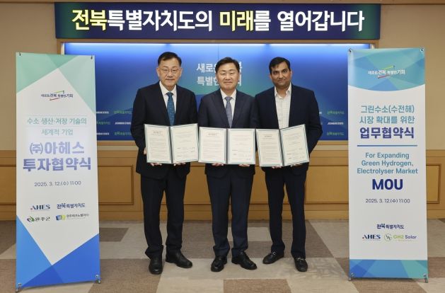 ㈜아헤스 이중희 대표는 “전북자치도와의 긴밀한 협력을 통해 수소 수전해 분야에서 세계 최고 수준의 제품을 생산해 낼 것”이라며, “이번 투자를 계기로 국내외 그린수소 시장에서 전북의 위상이 한층 높아지도록 노력하겠다”고 밝혔다.
