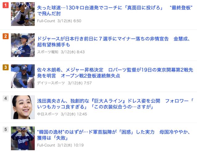 다음으로 많이 읽힌 기사는 일본 야구 전문 매체 '풀카운트'가 작성한 "한국의 유망주였으나…다저스 구단 "혼란스러웠다"는 평가, 모국은 차가운 반응, 영입은 실패"라는 제목의 기사였다. 이 매체는 "3년 계약으로 주전 2루수 후보로 영입된 큰 기대를 받던 김혜성에 대해, 한국 미디어는 다저스의 영입이 실패했다고 차가운 시선을 보내고 있다"고 전했다.