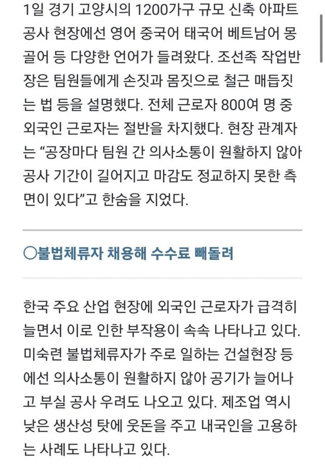 한국말도 모르는 미숙련 동남아 인부 부려가면서