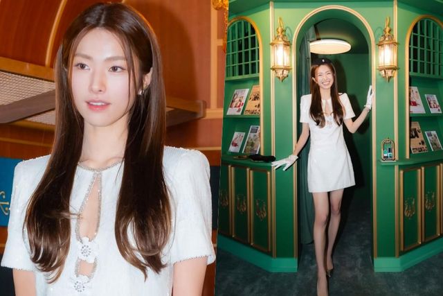이날 하영은 화이트 미니 트위드 원피스를 입고 인형 같은 자태를 뽐냈다. 특히 트여있는 가슴 중앙 사이, 꽃 모양 단추로 노출을 줄인 하영의 패션 센스가 시선을 강탈한다.