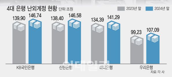 은행별로 살펴보면 국민은행 난외계정이 지난해 말 기준 약 146조 7412억원으로 가장 많았다. 신한은행이 146조 5826억원, 하나은행이 141조 2860억원, 우리은행이 107조 893억원으로 뒤를 이었다. 각 은행의 난외계정은 지난 1년간 6~8조원씩 늘었다.