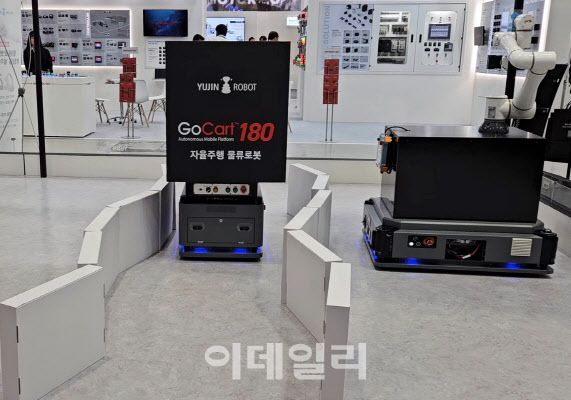 유진로봇(056080)은 고성능과 안정성을 갖춘 고중량 자율주행로봇(AMR) ‘고카트(GoCart) 1500’을 이번 전시에서 대중에 처음 공개하고 시연했다. 최대 1.5t을 적재할 수 있어, 고중량 자재나 완제품 이송이 요구되는 생산 및 물류 현장에서 최적의 자동화 시스템을 구축해 경쟁력을 높일 수 있다는 설명이다.