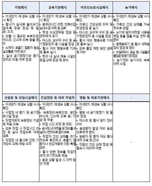 환경부는 황사 위기경보 ‘관심’ 단계가 발령됨에 따라 관계 기관과 해당 지자체에 곧바로 상황을 전파하고, ‘황사 재난 안내서(매뉴얼)’에 따라 철저하게 대응할 것을 요청했다.