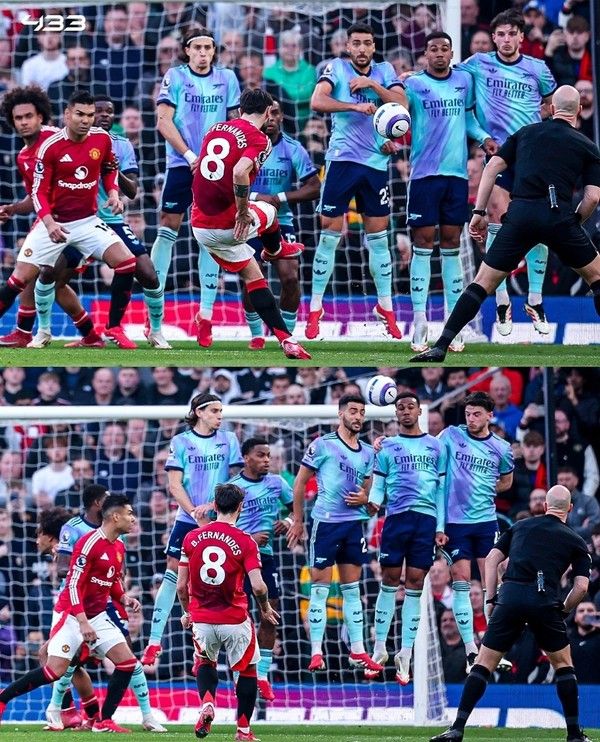 아스날의 찬스 후 맨유에게도 역전의 찬스가 찾아왔다. 오른쪽 측면에서 찬 볼이 흘러나온게 페널티박스안 정면에서 브루노 페르난데스가 프리찬스를 맞이했고, 왼쪽 골문 하단으로 슈팅을 했지만 라냐가 환상적인 선방을 했다.