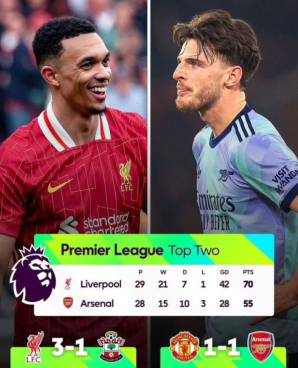 이어 이번 경기로 "리그 우승경쟁이 끝났는지?"에 대해 아르테타는 "그렇게 말하고 싶지 않지만 오늘 실망스러운 건 우리가 승리하지 못했다는 점이다. 우리는 상황을 긴박함을 알고 있고, 우승이 어떤 가능성이라도 있으려면 모든 경기에 이기는 것이 중요하다. 지금은 우승 경쟁이 끝났는지에 대해 이야기할 적절한 시점이 아니라고 생각한다"라고 말했다.