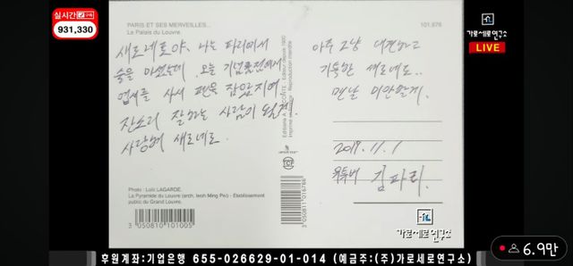 김수현이 군 복무 당시 김새론에게 보냈다는 편지 (가세연 주장입니다) / 유튜브 '가로세로연구소'