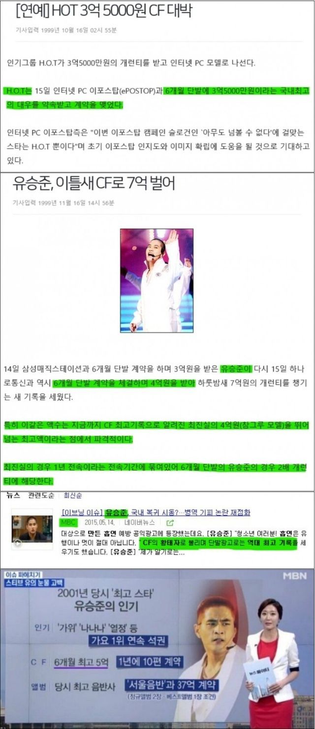 1위 유승준 / 5위 젝스키스 / 10위 H.O.T