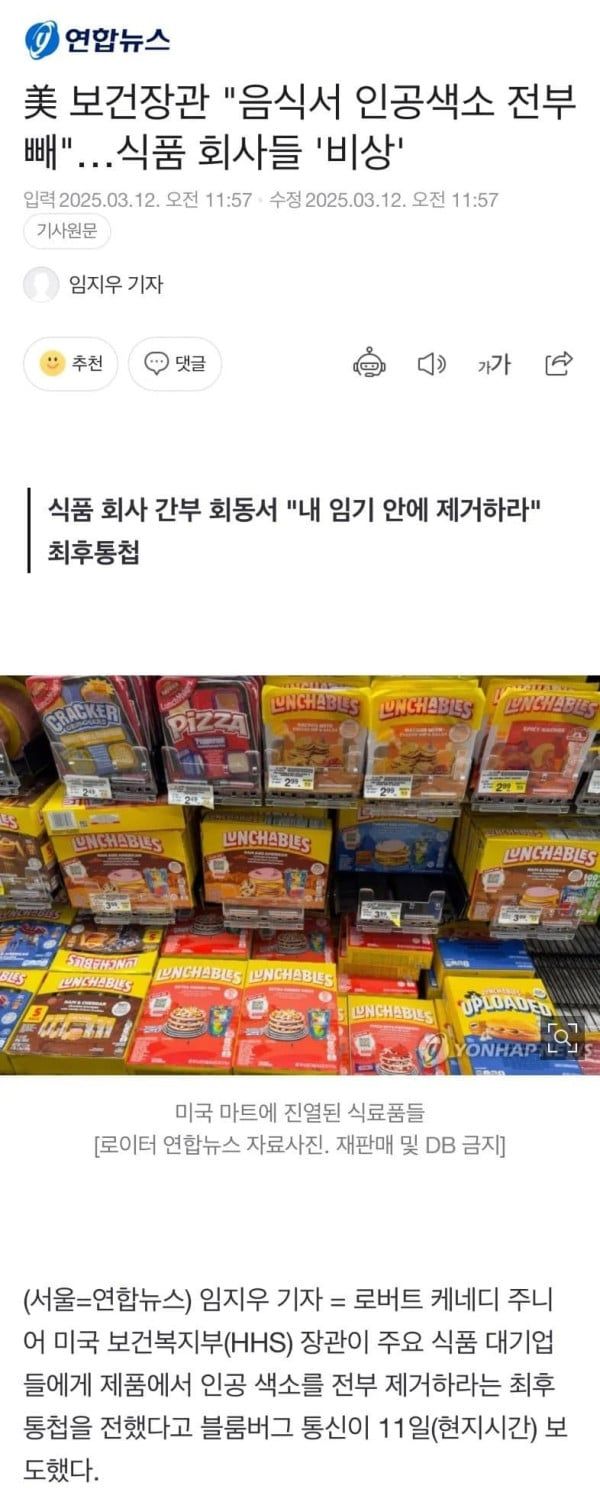보건장관 명령으로 이젠 가공식품에 들어간 인공 색소를 제거해야하는데
