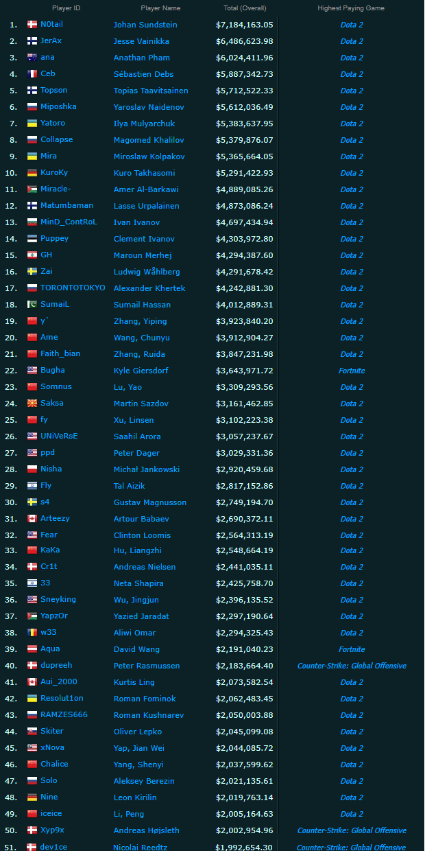 최초 ti 2회우승 상금랭킹 1위 노테일