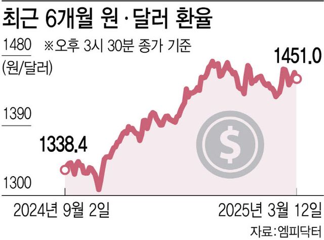 시장 전문가들은 환율 1400원대가 완전히 고착화되진 않겠지만 상반기 중에는 국내 경기적으로나 대외 요인 면에서도 환율 하락(원화 가치 상승) 재료가 딱히 없어 환율이 1400원대를 유지할 것으로 예상했다. 달러가 고점 대비 다소 약세를 보이고 있으나, 그 원인인 미국의 관세 정책 불확실성과 경기에 대한 우려가 원화 가치에 우호적인 재료가 아니고, 달러 매수 우위의 수급 환경도 환율이 하향 안정화되긴 힘들 것이라는 이유에서다.