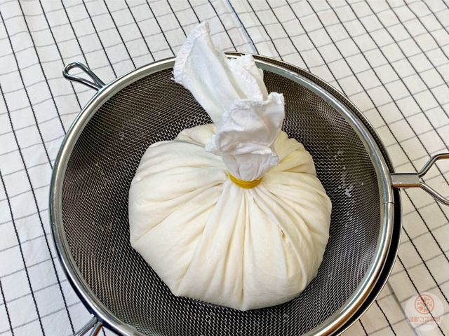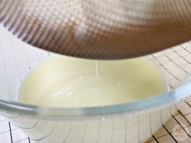 체에 면보를 깔고 순두부처럼 변한 우유를 부으면