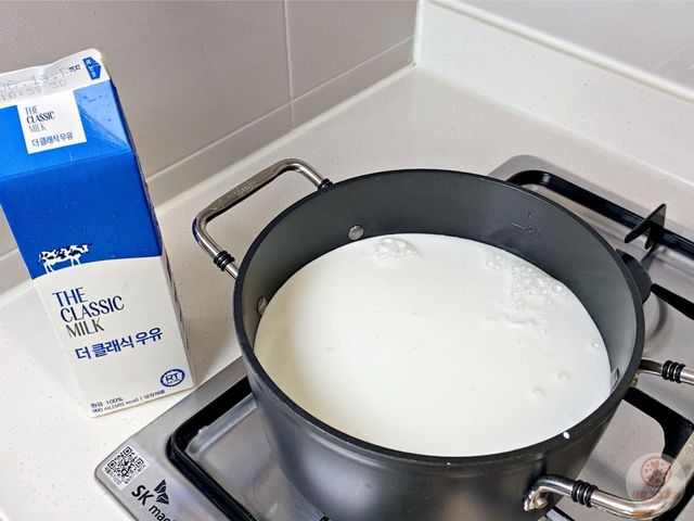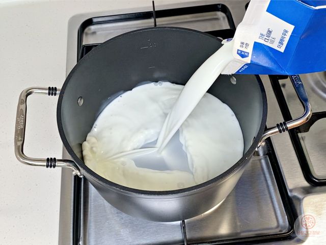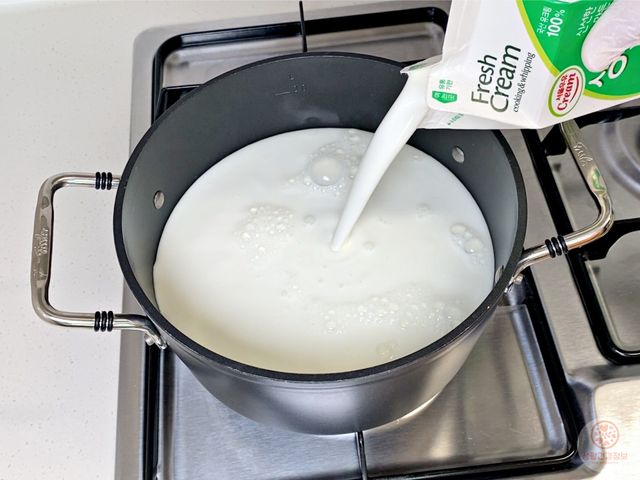 생크림 500ml도 부어주세요. (우유 1리터 기준)
