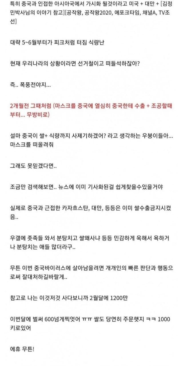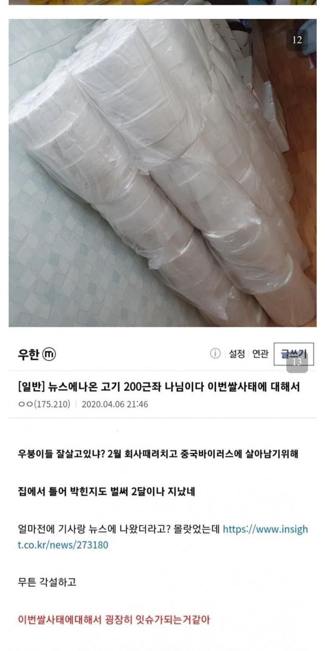 코로나 당시 쌀 1.2t이랑 고기 200근 산 새끼