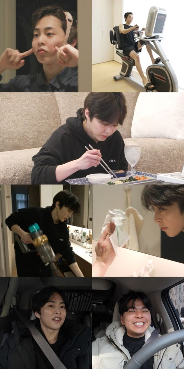 이어 하루를 시작한 시우민은 본인만의 모닝 루틴과 철저한 자기 관리법을 선보인다. 일어나자마자 얼굴에 부기 제거 밴드를 감아 간밤에 부은 얼굴을 관리하는가 하면 사이클과 노래 연습을 동시에 하는 고강도의 훈련을 선보이며 모두를 놀라게 했다는 후문.