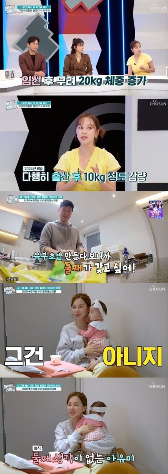 이어 "살이 찌니까 콜레스테롤 수치가 높아지고, 족저근막염까지 생겼다. 예전처럼 마르고 싶은데 또 너무 다이어트를 하면 체력이 떨어져서 아이를 잘 돌보지 못하니까 탄탄하고 건강한 몸매를 만들고 싶다는 생각만 있다"고 얘기했다.